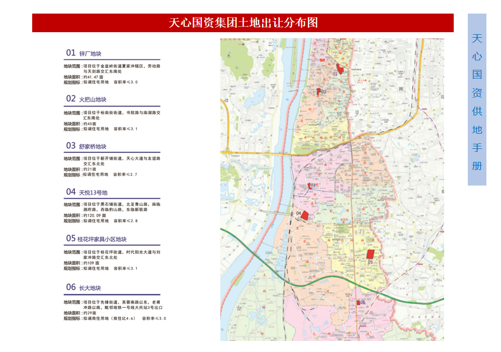 本次重點(diǎn)推介的長(zhǎng)沙鋅廠地塊、火把山地塊、舒家橋地塊、天悅13號(hào)地塊、桂花坪家具小區(qū)地塊、長(zhǎng)大地塊這六大地塊,分別位于外灘片區(qū)和省府片區(qū),每宗地塊都各具特色,借助天心區(qū)多元的產(chǎn)業(yè)生態(tài)、強(qiáng)勁的消費(fèi)力以及顯著的人口吸附力,投資潛力巨大,是值得投資興業(yè)的優(yōu)質(zhì)標(biāo)的。